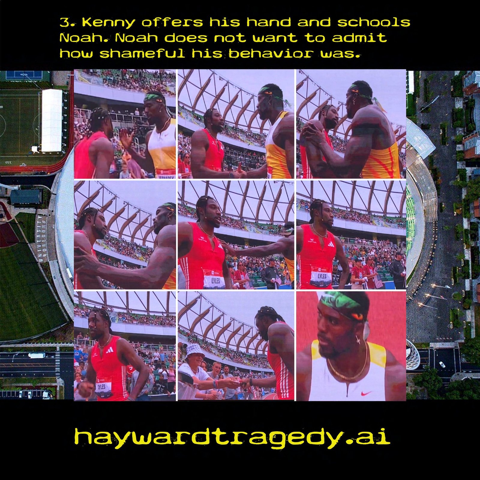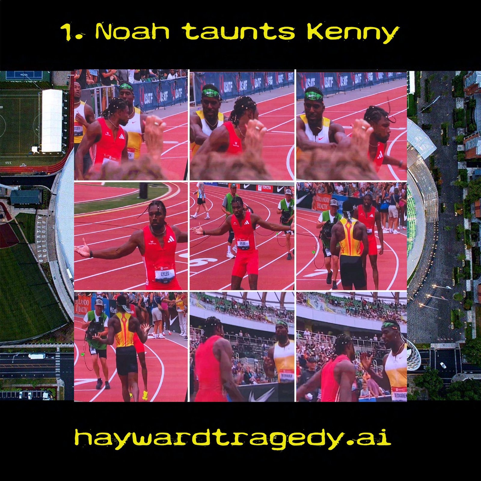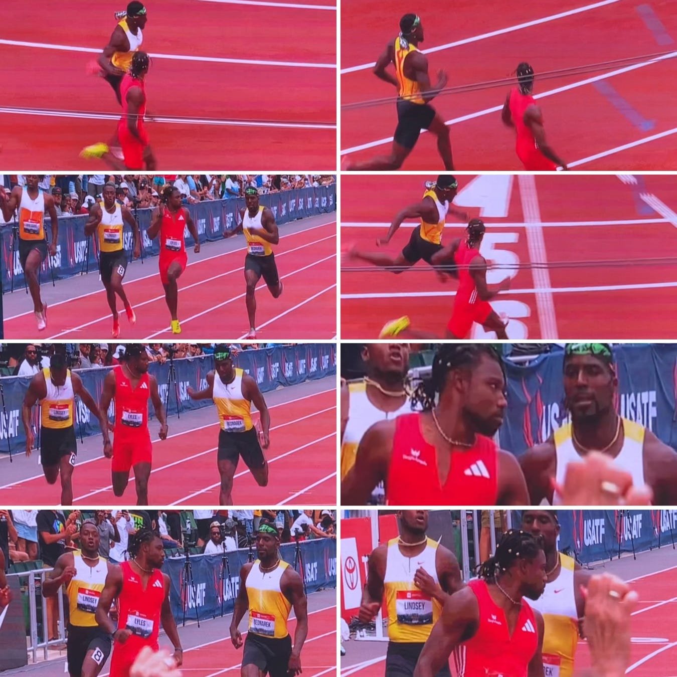This incident in the USAFT National Track and Field 2025 Championship needs to be called out for what it is: Taunting. Noah Lyles looked over to taunt Kenny Bednarek before they crossed the finish line, continued the taunt through the finish line and crossed over into Kenny’s path still taunting. Whatever history there may be, whatever happened off or on the track before this incident does not matter. This behavior is not allowed. It should never happen. It must never be tolerated. It clearly did happen and the very least, Adidas should acknowledge that it did, that they do not support it and therefore will not pay Noah his bonus for the win. The USFTA should make a similar statement. Noah should apologize publicly. If Noah wants to properly redeem himself he should, publicly, hand his gold medal to Kenny and withdraw from the 200. He should only run the 100, where he has conducted himself honorably. There is plenty of glory to be won there. As for the relay, what do you think?